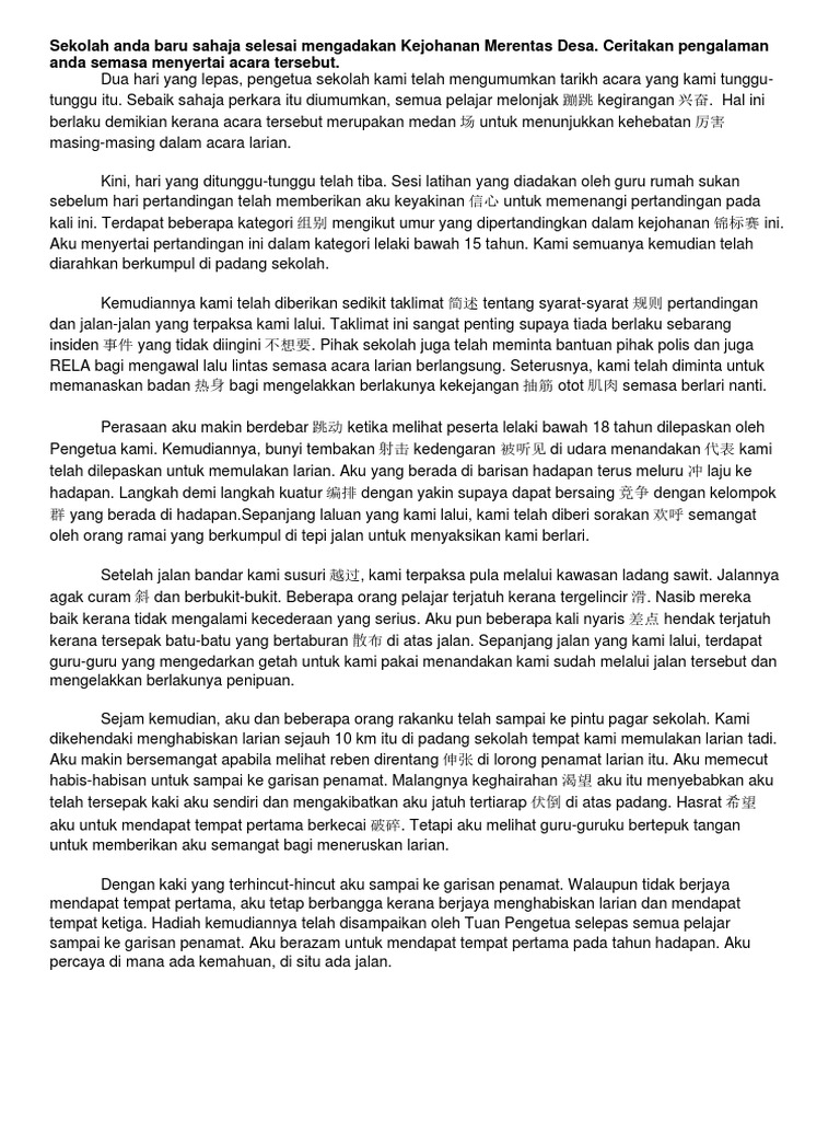 Contoh Karangan Tentang Kejohanan Merentas Desa